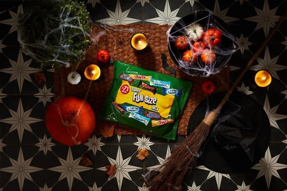 1 x Chocolate Bulk Bag of 71 – Fun-size Chocolate bars, including Snickers 14 x 18g, Twix 19 x 20g, Bounty 12 x 28.5g, MilkyWay 12 x 15.5g and Mars 15 x 18g. Total of 1.4kg!